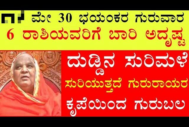 ಎಲ್ಲರಿಗೂ ನಮಸ್ಕಾರ ಸ್ನೇಹಿತರೆ ಮೇ ಮೂವತ್ತನೇ ತಾರೀಖು ಬೇಡ ವಿಶೇಷವಾದ ವಿಶೇಷವಾದ ಗುರುವಾರ ನಾಳೆ ಗುರುವಾರ ದಿಂದ ಐದು ರಾಶಿಯವರಿಗೆ ಬಾರಿ ಅದೃಷ್ಟ ಮತ್ತು ಗುರುರಾಯರ ಸಂಪೂರ್ಣವಾಗಿ ಕುಸಿದಿದ್ದು, ಮನೆಯಲ್ಲಿ ದುಡ್ಡಿನ ಸುರಿಮಳೆ ಆಗುತ್ತೆ ಮತ್ತು ಇವರ ರಾಜ್ಯದ ಪಡುತ್ತಾರೆ ಅಂತ ಹೇಳಬಹುದು. ಇದರ ಲಾಭವನ್ನು ಇರುವ ಶುರು ಕಾಣುತ್ತಿರುತ್ತಾನೆ ಹೇಳಬಹುದು. ಇದನ್ನು ಒಂದು ಗುರುವಾರದಿಂದ ಎಲ್ಲ ರಾಶಿಗಳಿಗೆ ಯಾವ ಫಲಗಳು ಸಿಗುತ್ತೆ ಮತ್ತು ಯಾವ ರಾಶಿಗಳಿಗೆ ಗುರು ರಾಯರು ಬಂದು ಸಿಗ್ತಾ ಇದೆ ಅಂತ ನಾವು ಇವತ್ತಿಗೆ ಸಂಪೂರ್ಣ ಮಾಹಿತಿ ನಾವು ಕೊಡ್ತೀವಿ ಬನ್ನಿ