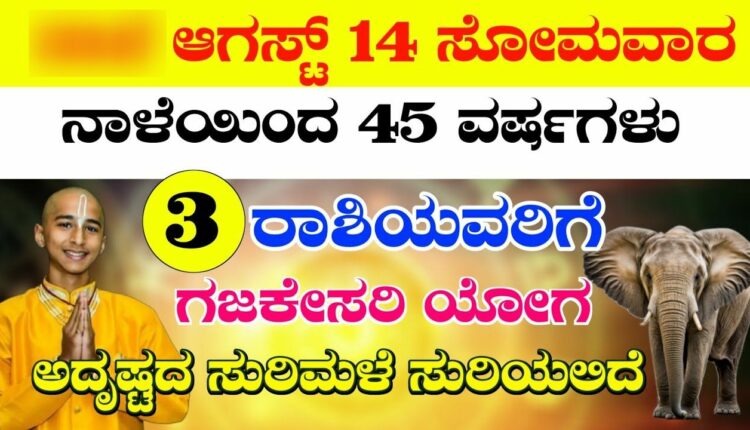 ಆಗಸ್ಟ್ 14 ಸೋಮವಾರ 45 ವರ್ಷಗಳು 3 ರಾಶಿಯವರಿಗೆ ಗಜಕೇಸರಿ ಯೋಗ!