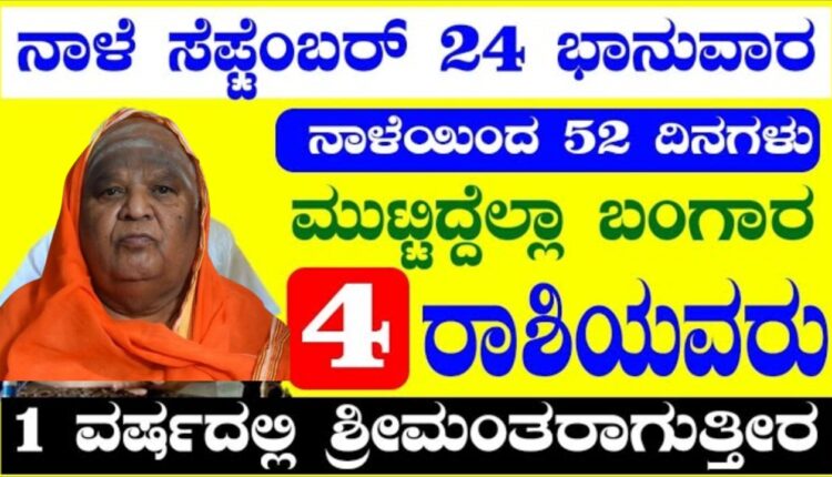 ಸೆಪ್ಟೆಂಬರ್ 24 ಭಾನುವಾರ ನಾಳೆಯಿಂದ 52 ದಿನಗಳು 4 ರಾಶಿಯವರಿಗೆ ಮುಟ್ಟಿದ್ದೆಲ್ಲಾ ಬಂಗಾರ!