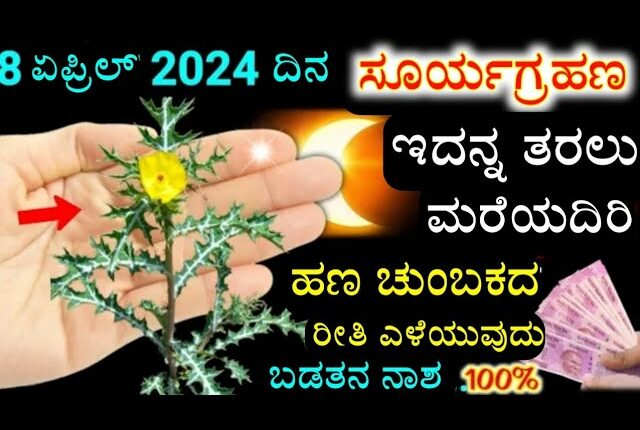 8 ಏಪ್ರಿಲ್ ಸೂರ್ಯ ಗ್ರಹಣ ಇದೆ. ಇದು ಪೂರ್ಣವಾದ ಸೂರ್ಯ ಗ್ರಹಣವಾಗಿದೆ. ಈ ಸೂರ್ಯಗ್ರಹಣ ಪೂರ್ಣವಾಗಿ ಹಿಡಿದಾಗ ಸ್ವಲ್ಪ ಸಮಯದ ತನಕ ಭೂಮಿ ಮೇಲೆ ಸೂರ್ಯನ ಪ್ರಕಾರ ಬರುವುದಿಲ್ಲ.ಹಾಗಾಗಿ ಈ ಸಮಯವನ್ನು ಪ್ರತಿಯೊಬ್ಬರೂ ಕಾಯುತ್ತಾರೆ. ಈ ದಿನ ನೀವು ಯಾವುದೇ ಪೂಜೆ ಪಾಠಗಳನ್ನು ಮಾಡಿದರು ಖಂಡಿತವಾಗಿ ಅದರ ಲಾಭಗಳು ಸಾವಿರಪಟ್ಟು ಸಿಗುತ್ತದೆ. ಇದರಿಂದ ನಿಮ್ನ ಜೀವನದಲ್ಲಿ ಇರುವ ಎಲ್ಲಾ ಕಷ್ಟಗಳಿಂದ ಮುಕ್ತಿ ಸಿಗುತ್ತದೆ. ಇನ್ನು ಸೂರ್ಯ ಗ್ರಹಣದ ಸಮಯದಲ್ಲಿ ಈ ಸಸ್ಯವನ್ನು ಹಚ್ಚಿದರೆ ನಿಮ್ಮ ಮನೆ ವೃದ್ಧಿಯಾಗುತ್ತದೆ ಮತ್ತು ನಿಮ್ಮ ಜೀವನದಲ್ಲಿ ಧನಸಂಪತ್ತಿನ ಆಗಮನ ಆಗುತ್ತದೆ.