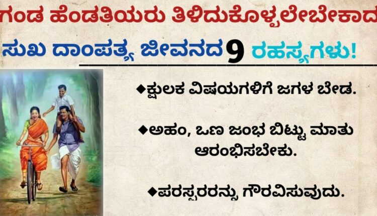 ಗಂಡ ಹೆಂಡತಿ ತಿಳಿದುಕೊಳ್ಳಲೇಬೇಕಾದ ಸುಖ ದಾಂಪತ್ಯ ಜೀವನದ 9 ರಹಸ್ಯಗಳು!