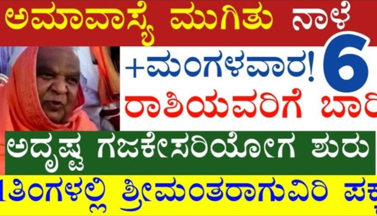 ಅಮಾವಾಸ್ಯೆ ಮುಗಿತು ನಾಳೆ ಮಂಗಳವಾರ!6ರಾಶಿಯವರಿಗೆ ಅದೃಷ್ಟ ಗಜಕೇಸರಿ ಯೋಗ 1ತಿಂಗಳಲ್ಲಿ ಶ್ರೀಮಂತರು