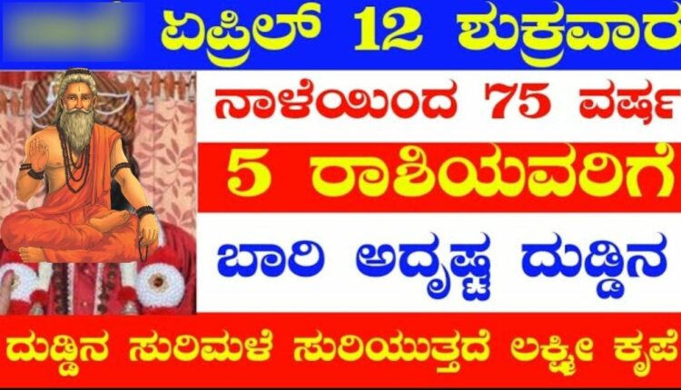 ಏಪ್ರಿಲ್ 12 ಶುಕ್ರವಾರ 5 ರಾಶಿಯವರಿಗೆ ಬಾರಿ ಅದೃಷ್ಟ ದುಡ್ಡಿನ ಸುರಿಮಳೆ ಸುರಿಯುತ್ತದೆ ನಾಳೆಯಿಂದ 75 ವರ್ಷ