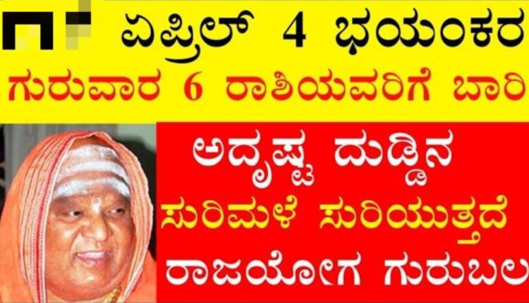 ಏಪ್ರಿಲ್ 4 ಭಯಂಕರ ಗುರುವಾರ 6 ರಾಶಿಯವರಿಗೆ ಬಾರಿ ಅದೃಷ್ಟ ದುಡ್ಡಿನ ಸುರಿಮಳೆ ಸುರಿಯುತ್ತದೆ ರಾಜಯೋಗ ಗುರುಬಲ