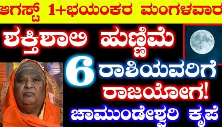 ಆಗಸ್ಟ್ 1 ಭಯಂಕರ ಮಂಗಳವಾರ ಶಕ್ತಿ ಶಾಲಿ ಹುಣ್ಣಿಮೆ 6 ರಾಶಿಯವರಿಗೆ ಅದೃಷ್ಟ ಚಾಮುಂಡೇಶ್ವರಿ ಕೃಪೆ ರಾಜಯೋಗ ಶ್ರೀಮಂತರು