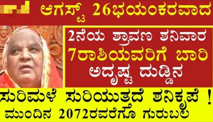 ಆಗಸ್ಟ್ 26ಭಯಂಕರ 2ನೆಯ ಶ್ರಾವಣ ಶನಿವಾರ 7ರಾಶಿಯವರಿಗೆ ಬಾರಿ ಅದೃಷ್ಟ ದುಡ್ಡಿನ ಸುರಿಮಳೆ ಸುರಿಯುತ್ತದೆ ಶನಿ ಕೃಪೆ