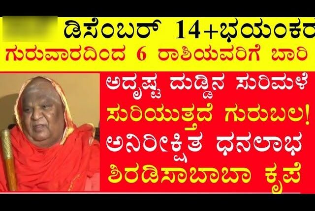 ಎಲ್ಲರಿಗೂ ನಮಸ್ಕಾರ ಸ್ನೇಹಿತರೆ ಇಂದು ಡಿಸೆಂಬರ್ ಹದಿನಾಲ್ಕನೇ ತಾರೀಖು ವಿಶೇಷವಾದೊಂದು ಗುರುವಾರದಿಂದ ಕೆಲವೊಂದು ರಾಶಿ ಗಳಿಗೆ ಸಾಹಿತ್ಯ ವನ್ನ ಸಂಪೂರ್ಣ ಕೃಪೆಯಿಂದ ಬಾರಿ ಅದೃಷ್ಟ ಮತ್ತು ದುಡ್ಡಿನ ಸುರಿಮಳೆ ಸುರಿಯುತ್ತ ಮತ್ತು ಅದರ ಶ್ರೀಮಂತ ಅಂತ ಹೇಳ ಬಹುದು. ಇಂದಿನಿಂದ ರಾಶಿಯವರಿಗೆ ಸಾಯಿಬಾಬನ ಸಂಪೂರ್ಣ ಕೃಪೆ ಇರುವುದರಿಂದ ಆರು ರಾಶಿ ಗಳಿಗೆ ಅದೃಷ್ಟ ಮತ್ತು ನೀವು ಆಗರ್ಭ ಶ್ರೀಮಂತ ರಾತ್ರಿ ಅಂತ ಹೇಳಿದ್ರಿ ತಪ್ಪಾಗ ಲಾರದು.