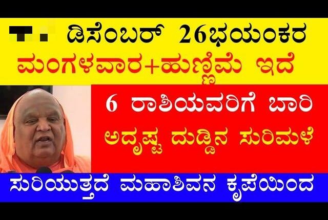 ಎಲ್ಲರಿಗೂ ನಮಸ್ಕಾರ ವೀಕ್ಷಕರೆ ಇಂದಿನಿಂದ ಕೆಲವೊಂದು ರಾಶಿಯವರಿಗೆ ವಿಶೇಷವಾದ ಧನಲಾಭ ಪ್ರಾಪ್ತಿಯಾಗುತ್ತದೆ.ಇಂದು ಡಿಸೆಂಬರ್ ಇಪ್ಪತ್ತಾರನೇ ತಾರೀಖು ಬಹಳ ಭಯಂಕರ ವಾಗಿರುವಂತಹ ಮಂಗಳವಾರ ಹಾಗು ಈ ಒಂದು ವರ್ಷದ ಕೊನೆಯ ಹುಣ್ಣಿಮೆ ಇರುವುದರಿಂದ ಈ ರಾಶಿಯವರ ಜೀವನ ಸಂಪೂರ್ಣ ವಾದ ತಿರು ವನ್ನು ಪಡೆದುಕೊಳ್ಳುತ್ತ ದೆ. ಹಾಗೆ ರಾಶಿ ಈ ರಾಶಿಯವರು ಲಕ್ಷ್ಮಿ ಪುತ್ರ ರಾಗುತ್ತಾರೆ. ಇವರ ಜೀವನ ದಲ್ಲಿ ಸಾಕಷ್ಟು ಅಭಿವೃದ್ಧಿ ಹಾಗು ಬರುತ್ತದೆ ಗೆ ಈ ರಾಶಿಯವರು ಲಕ್ಷ್ಮಿ ಪುತ್ರ ರಾಗುತ್ತಾರೆ ಇವರ ಜೀವನ ದಲ್ಲಿ ಸಾಕಷ್ಟು ಅಭಿವೃದ್ಧಿ ಆಗ ಲಿದ್ದು, ಈ ರಾಶಿಯವರು ಯಾವುದೇ ರೀತಿಯ ತೊಂದರೆಗಳು ಇದ್ದ ರೂ ಕೂಡ ಎಲ್ಲದರಿಂದ ಮುಕ್ತಿ ಯನ್ನು ಪಡೆದುಕೊಳ್ಳುತ್ತಾರೆ.