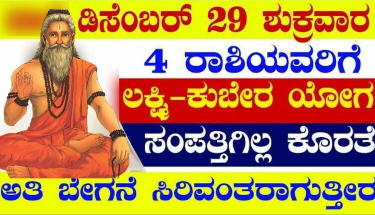 ಡಿಸೆಂಬರ್ 29 ಶುಕ್ರವಾರ4 ರಾಶಿಯವರಿಗೆ ಲಕ್ಷ್ಮಿ – ಕುಬೇರ ಯೋಗ ಅತಿ ಬೇಗನೆ ಸಿರಿವಂತರಾಗುತ್ತೀರ!