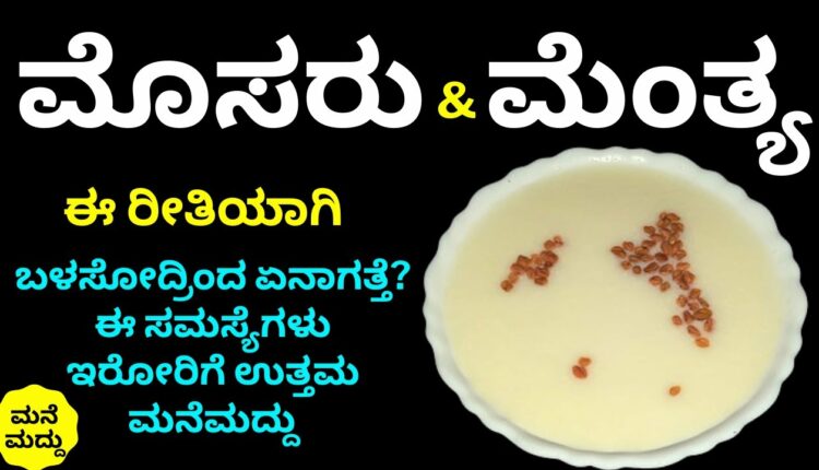 ಮೊಸರು ಮತ್ತು ಮೆಂತ್ಯೆಯಿಂದ ದೇಹದಲ್ಲಿ ಏನಾಗುತ್ತದೆ ಎನ್ನುವುದರ ಬಗ್ಗೆ ತಿಳಿಸಿಕೊಡುತ್ತೇವೆ.ಮೆಂತೆಕಾಳು ಕೂದಲಿಗೆ ಒಳ್ಳೆಯದು ಮತ್ತು ತಂಪನ್ನು ಕೊಡುತ್ತದೆ. ಇದರಲ್ಲಿ ಮೊಸರನ್ನು ಮಿಕ್ಸ್ ಮಾಡಿದಾಗ ತುಂಬಾ ಪ್ರಯೋಜನಗಳು ಸಿಗುತ್ತವೆ. ಮೊದಲು ಒಂದು ಚಮಚ ಮೆಂತೆ ಹಾಗು ಒಂದು ಲೋಟ ಹಾಕಿ ಸ್ವಲ್ಪ ಮೊಸರು ಹಾಕಿ ಹೆಪ್ಪು ಹಾಕಬೇಕು. ಬೆಳಗ್ಗೆ ಎದ್ದರೆ ಇದು ಮೊಸರು ಆಗಿರುತ್ತದೆ. ಇದನ್ನು ಸೇವನೆ ಮಾಡಿದರೆ ವೆಯಿಟ್ ಲಾಸ್ ಆಗುತ್ತದೆ.