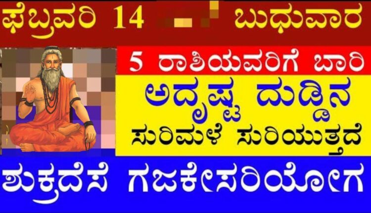 ಫೆಬ್ರವರಿ 14 ಬುಧುವಾರ 5 ರಾಶಿಯವರಿಗೆ ಬಾರಿ ಅದೃಷ್ಟ ದುಡ್ಡಿನ ಸುರಿಮಳೆ ಸುರಿಯುತ್ತದೆ ಶುಕ್ರದೆಸೆ ಗಜಕೇಸರಿಯೋಗ