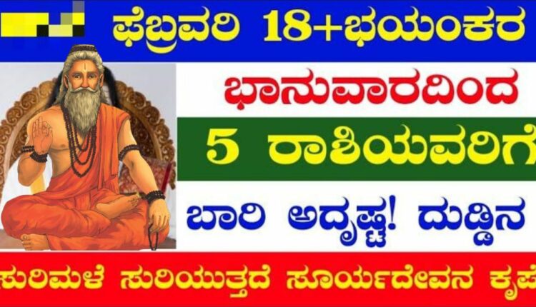 ಫೆಬ್ರವರಿ 18 ಭಯಂಕರ ಭಾನುವಾರ 5 ರಾಶಿಯವರಿಗೆ ಬಾರಿ ಅದೃಷ್ಟ ದುಡ್ಡಿನ ಸುರಿಮಳೆ ಸುರಿಯುತ್ತದೆ ಸೂರ್ಯಾದೇವನ ಕೃಪೆ