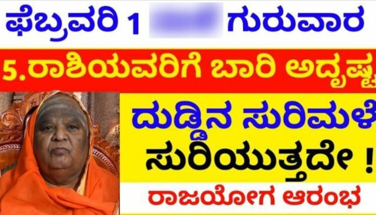 ಫೆಬ್ರವರಿ 1ಗುರುವಾರ 5.ರಾಶಿಯವರಿಗೆ ಬಾರಿ ಅದೃಷ್ಟ ದುಡ್ಡಿನ ಸುರಿಮಳೆ ಸುರಿಯುತ್ತದೆ ರಾಜಯೋಗ ಆರಂಭ