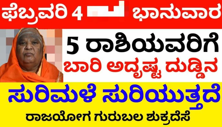 ಫೆಬ್ರವರಿ 4 ಭಾನುವಾರ 5 ರಾಶಿಯವರಿಗೆ ಬಾರಿ ಅದೃಷ್ಟ ದುಡ್ಡಿನ ಸುರಿಮಳೆ ಸುರಿಯುತ್ತದೆ ರಾಜಯೋಗ ಗುರುಬಲ ಶುಕ್ರದೆಸೆ