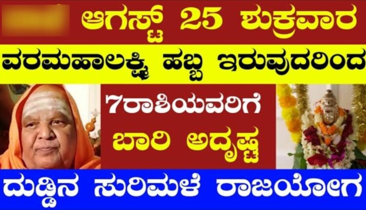 ಆಗಸ್ಟ್ 25 ಶುಕ್ರವಾರ ವರಮಹಾಲಕ್ಷ್ಮಿ ಹಬ್ಬ ಇರುವುದರಿಂದ 7 ರಾಶಿಯವರಿಗೆ ಬಾರಿ ಅದೃಷ್ಟ ದುಡ್ಡಿನ ಸುರಿಮಳೆ ರಾಜಯೋಗ