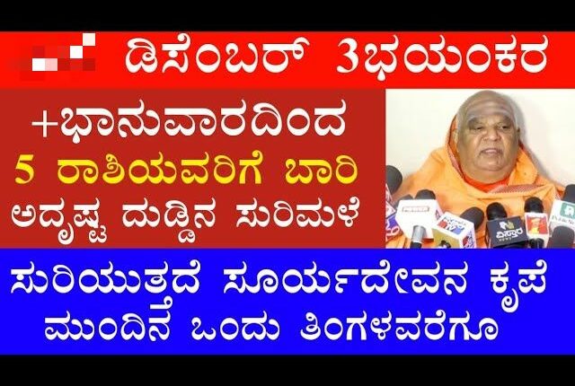 ಡಿಸೆಂಬರ್ 3ಭಯಂಕರ ಭಾನುವಾರದಿಂದ 5 ರಾಶಿಯವರಿಗೆ ಬಾರಿ ಅದೃಷ್ಟ ದುಡ್ಡಿನ ಸುರಿಮಳೆ ಸುರಿಯುತ್ತದೆ ಸೂರ್ಯದೇವನ ಕೃಪೆ