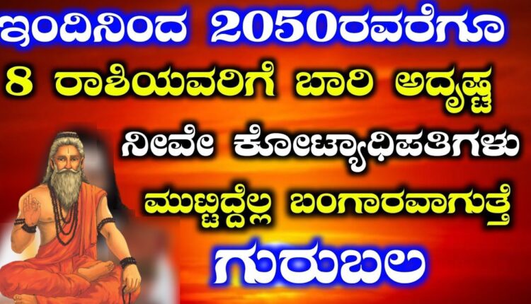 ಇಂದಿನಿಂದ 2050ರವರೆಗೂ 8 ರಾಶಿಯವರಿಗೆ ಬಾರಿ ಅದೃಷ್ಟ ನೀವೇ ಕೋಟ್ಯಾಧಿಪತಿಗಳು ಮುಟ್ಟಿದ್ದೆಲ್ಲ ಬಂಗಾರವಾಗುತ್ತೆ ಗುರುಬಲ