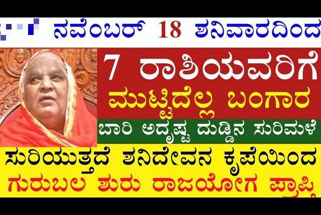 ಎಲ್ಲರಿಗೂ ನಮಸ್ಕಾರ ಸ್ನೇಹಿತರೆ ನವೆಂಬರ್ 18ನೇ ತಾರೀಖು ವಿಶೇಷವಾದ ಮತ್ತು ಭಯಂಕರವಾದ ಶನಿವಾರದಿಂದ ಕೂಡ ಬಾರಿ ಅದೃಷ್ಟ ಮತ್ತು ಕೋಟ್ಯಾಧಿಪತಿ ಯಾಗುವ ಯೋಗ ಕೂಡಿ ಬರುತ್ತದೆ ಅಂತ ಹೇಳ ಬಹುದು ಮತ್ತು ಈ ಶನಿವಾರ ದಿಂದ ಏಳು ರಾಶಿಯವರ ಜೀವನ ದಲ್ಲಿ ಅವರ ಅದೃಷ್ಟ ವೇ ಬದಲಾಗುತ್ತೆ. ನಿಮ್ಮ ಜೀವನದಲ್ಲಿ ಎಲ್ಲ ವೂ ಕೂಡ ಸುಗಮವಾಗಿ ನಾಳೆಯಿಂದ ಸಾಗುತ್ತೆ. ಯಾವುದೇ ರೀತಿಯ ತೊಂದರೆಗಳು ಇದ್ದ ರೂ ಕೂಡ ದೂರವಾಗುತ್ತೆ ಮತ್ತು ಹೆಚ್ಚು ಪ್ರಯೋಜನ ಗಳನ್ನು ನಾಳೆಯಿಂದ ಪಡೆದುಕೊಳ್ಳ ಲು ಸಾಧ್ಯವಾಗುತ್ತದೆ.