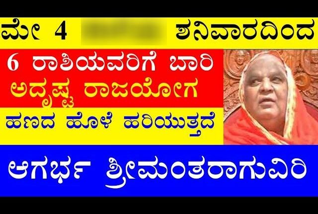 ಮೇ 4 ಶನಿವಾರದಿಂದ 6 ರಾಶಿಯವರಿಗೆ ಬಾರಿ ಅದೃಷ್ಟ ರಾಜಯೋಗ ಆಗರ್ಭ ಶ್ರೀಮಂತರಾಗುವಿರಿ ಹಣದ ಹೊಳೆ ಹರಿಯುತ್ತದೆ