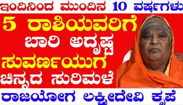 ಇಂದಿನಿಂದ ಮುಂದಿನ 10ವರ್ಷಗಳು 5 ರಾಶಿಯವರಿಗೆ ಬಾರಿ ಅದೃಷ್ಟ ಸುವರ್ಣಯುಗ ಚಿನ್ನದ ಸುರಿಮಳೆ ರಾಜಯೋಗ ಲಕ್ಷ್ಮೀದೇವಿ ಕೃಪೆ