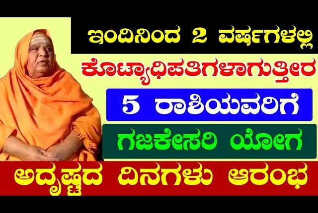 ಎಲ್ಲರಿಗೂ ನಮಸ್ಕಾರ. ಇಂದಿನಿಂದ ಎರಡು ವರ್ಷಗಳಲ್ಲಿ ಕೋಟ್ಯಧಿಪತಿಗಳ ಗೊತ್ತಿರ ಐದು ರಾಶಿಯವರಿಗೆ ಗಜಕೇಸರಿ ಯೋಗ. ಅದೃಷ್ಟದ ದಿನಗಳು ಆರಂಭ.ಹಾಗಾದ್ರೆ ಅಂತಹ ಅದೃಷ್ಟವಂತ ರಾಶಿಗಳು ಯಾವುವು ಅಂತ ನೋಡೋಣ ಬನ್ನಿ.