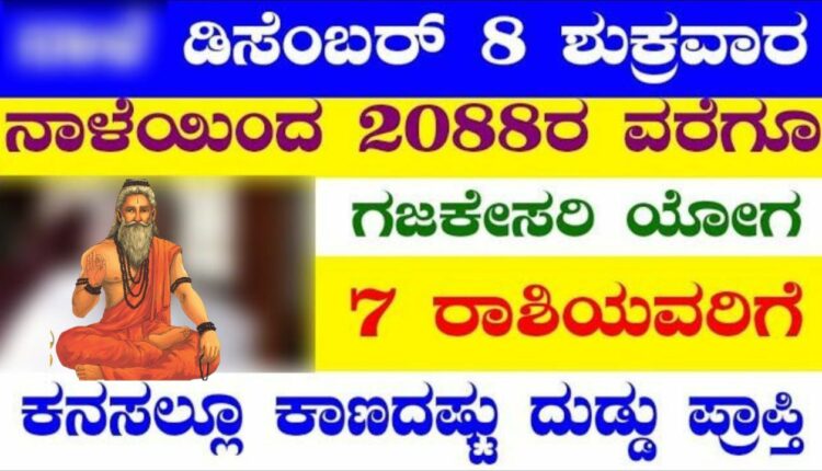 ಡಿಸೆಂಬರ್ 8 ಶುಕ್ರವಾರ ನಾಳೆಯಿಂದ 2088ರ ವರೆಗೂ ಗಜಕೇಸರಿ ಯೋಗ 7 ರಾಶಿಯವರಿಗೆ ಕನಸಲ್ಲೂ ಕಾಣದಷ್ಟು ದುಡ್ಡು!