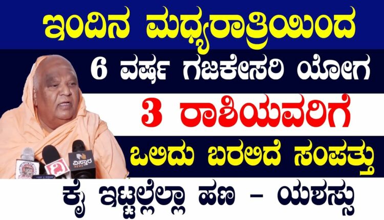 ಇಂದಿನ ಮಧ್ಯರಾತ್ರಿಯಿಂದ6 ವರ್ಷ ಗಜಕೇಸರಿ ಯೋಗ3 ರಾಶಿಯವರಿಗೆ ಒಲಿದು ಬರಲಿದೆ ಸಂಪತ್ತು ಕೈ ಇಟ್ಟಲ್ಲೆಲ್ಲಾ ಹಣ – ಯಶಸ್ಸು!