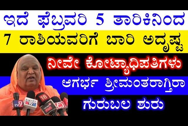 ಇದೆ.ಫೆಬ್ರವರಿ 5 ತಾರಿಕಿನಿಂದ 7 ರಾಶಿಯವರಿಗೆ ಬಾರಿ ಅದೃಷ್ಟ ನೀವೇ ಕೋಟ್ಯಾಧಿಪತಿಗಳು ಆಗರ್ಭ ಶ್ರೀಮಂತರಾಗ್ತಿರಾ
