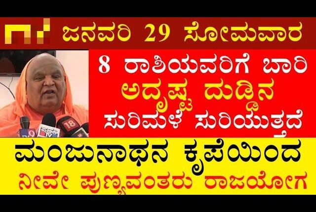 ಜನವರಿ 29 ಸೋಮವಾರ 8 ರಾಶಿಯವರಿಗೆ ಬಾರಿ ಅದೃಷ್ಟ ಬರಲಿದೆ ದುಡ್ಡಿನ ಸುರಿಮಳೆ ಸುರಿಯುತ್ತದೆ ಮಂಜುನಾಥನ ಕೃಪೆಯಿಂದ