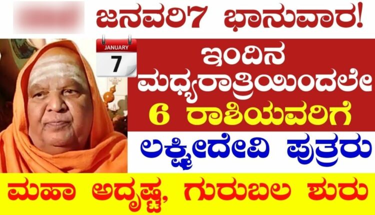 ಜನವರಿ7 ಭಾನುವಾರ ಇಂದಿನ ಮಧ್ಯರಾತ್ರಿಯಿಂದ 6ರಾಶಿಯವರಿಗೆ ಲಕ್ಷ್ಮೀದೇವಿ ಕೃಪೆ ಮಹಾಅದೃಷ್ಟ ಗುರುಬಲ