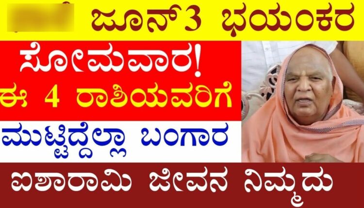 ಜೂನ್3 ಭಯಂಕರ ಸೋಮವಾರ!4ರಾಶಿಯವರಿಗೆ ಮುಟ್ಟಿದ್ದೆಲ್ಲಾ ಚಿನ್ನ ಮಂಜುನಾಥನ ಕೃಪೆ ಗುರುಬಲ