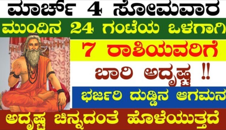 ಮಾರ್ಚ್ 4 ಸೋಮವಾರ ಮುಂದಿನ 24 ಗಂಟೆಯ ಒಳಗಾಗಿ 7 ರಾಶಿಯವರಿಗೆ ಬಾರಿ ಅದೃಷ್ಟ ಭರ್ಜರಿ ದುಡ್ಡಿನ ಆಗಮನ ಅದೃಷ್ಟ ಚಿನ್ನದಂತೆ