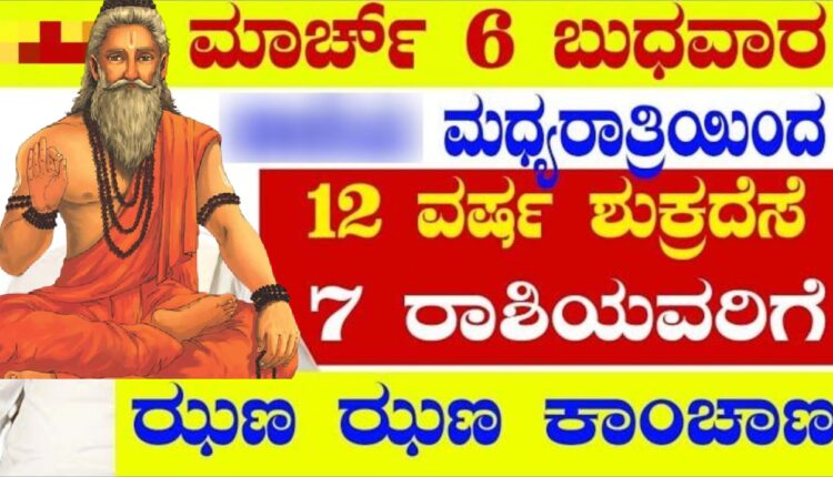 ಎಲ್ಲರಿಗೂ ನಮಸ್ಕಾರ ಮಾರ್ಚ್ ಆರನೇ ತಾರೀಖು ಬುಧವಾರ ಮಧ್ಯರಾತ್ರಿಯಿಂದ 12 ವರ್ಷ ಶುಕ್ರಸಿ ಏಳು ರಾಶಿಯವರಿಗೆ ಝಣ ಝಣ ಕಾಂಚಾಣ. ಹಾಗಾದರೆ ಅಂತಹ ಅದೃಷ್ಟವಂತ ರಾಶಿಗಳು ಯಾವುದು ಅಂತ ನೋಡೋಣ ಬನ್ನಿ