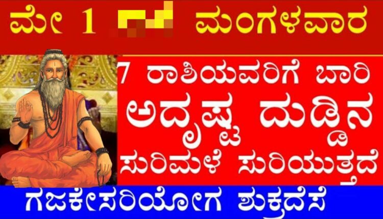 ಮೇ 1 ಮಂಗಳವಾರ 7 ರಾಶಿಯವರಿಗೆ ಬಾರಿ ಅದೃಷ್ಟ ದುಡ್ಡಿನ.ಸುರಿಮಳೆ ಸುರಿಯುತ್ತದೆ ಗಜಕೇಸರಿಯೋಗ ಶುಕ್ರದೆಸೆ