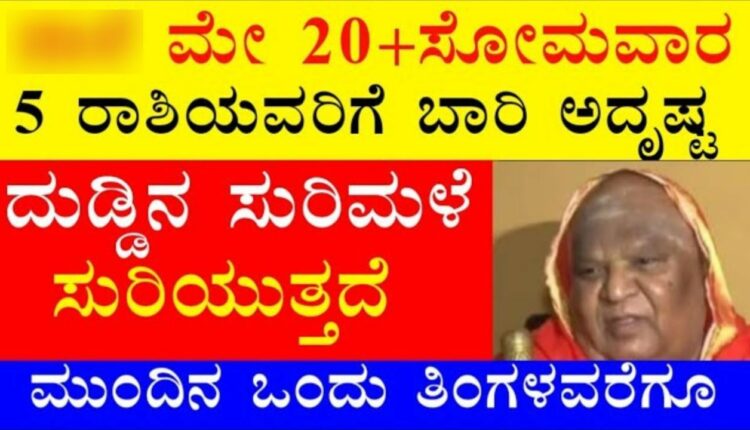 ಮೇ 20 ಸೋಮವಾರ 5 ರಾಶಿಯವರಿಗೆ ಬಾರಿ ಅದೃಷ್ಟ ದುಡ್ಡಿನ ಸುರಿಮಳೆ ಸುರಿಯುತ್ತದೆ ನೀವೇ ಪುಣ್ಯವಂತರು.
