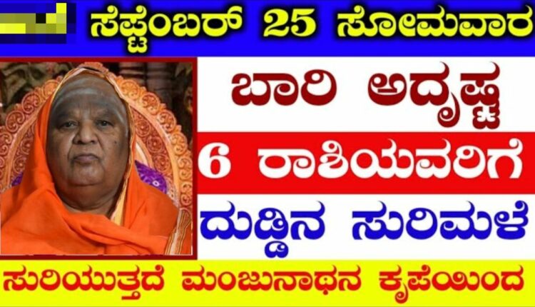 ಸೆಪ್ಟೆಂಬರ್ 25 ಸೋಮವಾರ 6 ರಾಶಿಯವರಿಗೆ ಬಾರಿ ಅದೃಷ್ಟ ದುಡ್ಡಿನ ಸುರಿಮಳೆ ಸುರಿಯುತ್ತದೆ ಮಂಜುನಾಥನ ಕೃಪೆಯಿಂದ