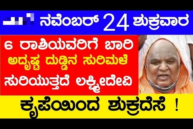 ನವೆಂಬರ್ 24 ಶುಕ್ರವಾರ 6 ರಾಶಿಯವರಿಗೆ ಬಾರಿ ಅದೃಷ್ಟ ದುಡ್ಡಿನ ಸುರಿಮಳೆ ಸುರಿಯುತ್ತದೆ ಲಕ್ಷ್ಮೀದೇವಿ ಕೃಪೆಯಿಂದ