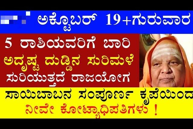 ಅಕ್ಟೊಬರ್ 19+ಗುರುವಾರ 5 ರಾಶಿಯವರಿಗೆ ಬಾರಿ ಅದೃಷ್ಟ ದುಡ್ಡಿನ ಸುರಿಮಳೆ ಸುರಿಯುತ್ತದೆ ರಾಜಯೋಗ ಸಾಯಿಬಾಬನ ಕೃಪೆ