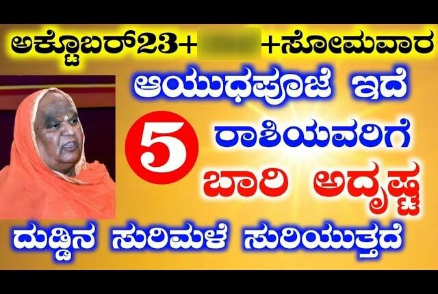 ಅಕ್ಟೋಬರ್ ಇಪ್ಪತ್ತ ಮೂರನೇ ತಾರೀಖು ವಿಶೇಷವಾದ ಸೋಮವಾರ ಮತ್ತು ಐದು ಪೂಜೆ ಹಬ್ಬ ಇದೆ. ಇದು ಬಹಳ ವಿಶೇಷ ವಾಗಿದ್ದು ನಾಳೆ ಒಂದು ಆಯುಧ ಪೂಜೆಯ ಮುಗಿದ ನಂತರ ಈ ಕೆಲವೊಂದು ರಾಷ್ಟ್ರ ಗಳಿಗೆ ಮುಟ್ಟಿ ದ್ದೆಲ್ಲ ಬಂಗಾರ ವಾಗುತ್ತೆ ಮತ್ತು ಅಂಜನ ಸಂಪೂರ್ಣ ವಾದ ಅನುಗ್ರಹ ಮತ್ತು ಆಶೀರ್ವಾದ ಸಿಕ್ಕಿದೆ ಅಂತ ಹೇಳ ಬಹುದು ಮತ್ತು ಮುಂದಿನ ದಿನಗಳಲ್ಲಿ ಐಷಾರಮಿ ಜೀವನ ನಡೆಸುತ್ತೀರಿ ಅಂತಾ ನೆ ಹೇಳ ಬಹುದು. ಹೌದು ನಾಳೆ ಒಂದು ಆಯಿತು ಪೂಜೆ ಮುಗಿದ ನಂತರ ರಾಶಿಯವರಿಗೆ ಈ ಐದು ರಾಶಿಯವರು ಕೂಡ ತುಂಬಾ ನೇ ಅದೃಷ್ಟವಂತ ಅಂತ ಹೇಳ ಬಹುದು. ಹಾಗಾದರೆ ಯಾವ ರಾಶಿ ಗಳಿಗೆ ನಾಳೆಯಿಂದ ಯಾವೆಲ್ಲ ಫಲ ಗಳು ದೊರೆಯುತ್ತ ವೆ? ಯಾವ ರಾಶಿ ಗೆ ಅನಕೃ ಸಿಗುತ್ತೆ ಅಂತ ನಾವು ಇವತ್ತಿನ ಇವುಗಳಿಗೆ ಸಂಪೂರ್ಣ ಮಾಹಿತಿ ತಿಳಿಸಿಕೊಡ್ತೀವಿ.