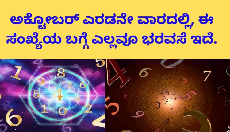 ಸಂಖ್ಯಾಶಾಸ್ತ್ರದ ಪ್ರಕಾರ, ಅಕ್ಟೋಬರ್ ಎರಡನೇ ವಾರದಲ್ಲಿ ಕೆಲವು ಮಂಗಳಕರ ಯೋಗಗಳು ಸೃಷ್ಟಿಯಾಗುತ್ತವೆ. ಈ ವಾರ ನಂಬರ್ 1 ಇರುವವರು ಈ ವಾರ ಅದೃಷ್ಟವಂತರು. ಸಂಖ್ಯೆ 2 ವ್ಯಕ್ತಿಯ ಪ್ರೀತಿಯ ಸಂಬಂಧವು ಸಾಕಷ್ಟು ಬಲವಾಗಿರುತ್ತದೆ. ಸಂಖ್ಯೆ 3 ತನ್ನ ವ್ಯವಹಾರದಲ್ಲಿ ಯಶಸ್ವಿಯಾಗುತ್ತದೆ. ಸಂಖ್ಯೆ 4: ಜನರು ಉತ್ತಮ ವೈಯಕ್ತಿಕ ಜೀವನವನ್ನು ಹೊಂದಿದ್ದಾರೆ.