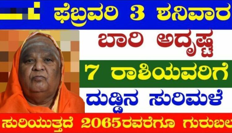 ಫೆಬ್ರವರಿ 3 ಶನಿವಾರ ಬಾರಿ ಅದೃಷ್ಟ 7 ರಾಶಿಯವರಿಗೆ ದುಡ್ಡಿನ ಸುರಿಮಳೆ ಸುರಿಯುತ್ತದೆ 2065ರ ವರೆಗೂ ಗುರುಬಲ ಶುರು