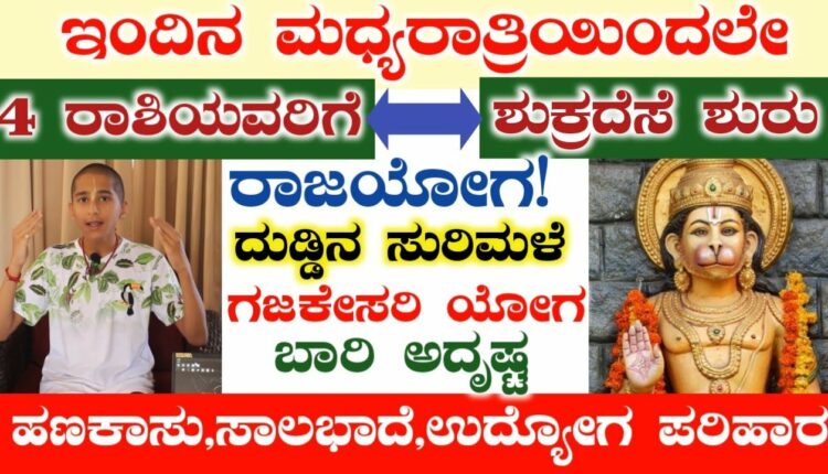 ಇಂದಿನ ಮಧ್ಯಾರಾತ್ರಿಯಿಂದಲೇ 4ರಾಶಿಯವರಿಗೆ ರಾಜಯೋಗ ಗಜಕೇಸರಿ ಯೋಗ ದುಡ್ಡಿನ ಸುರಿಮಳೆ ಭಾರಿ ಅದೃಷ್ಟ