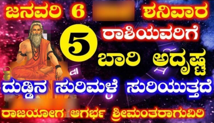 ಜನವರಿ 6 ಶನಿವಾರ 5ರಾಶಿಯವರಿಗೆ ಬಾರಿ ಅದೃಷ್ಟ ದುಡ್ಡಿನ ಸುರಿಮಳೆ ಸುರಿಯುತ್ತದೆ ರಾಜಯೋಗ ಆಗರ್ಭ ಶ್ರೀಮಂತರಾಗುವಿರಿ