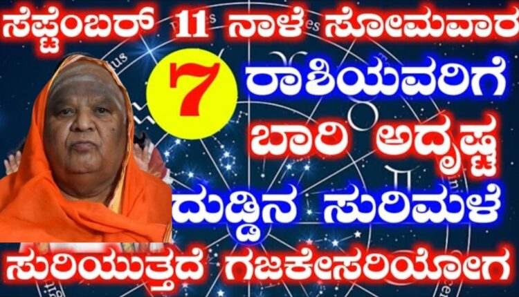 ಸೆಪ್ಟೆಂಬರ್ 11 ಸೋಮವಾರ 7 ರಾಶಿಯವರಿಗೆ ಬಾರಿ ಅದೃಷ್ಟ ದುಡ್ಡಿನ ಸುರಿಮಳೆ ಸುರಿಯುತ್ತದೆ ಗಜಕೇಸರಿಯೋಗ