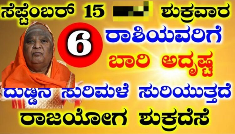 ಸೆಪ್ಟೆಂಬರ್ 15,ಶುಕ್ರವಾರ 6 ರಾಶಿಯವರಿಗೆ ಬಾರಿ ಅದೃಷ್ಟ ದುಡ್ಡಿನ ಸುರಿಮಳೆ ಸುರಿಯುತ್ತದೆ ರಾಜಯೋಗ ಶುಕ್ರದೆಸೆ