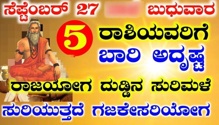 ಸೆಪ್ಟೆಂಬರ್ 27 ಬುಧುವಾರ 5 ರಾಶಿಯವರಿಗೆ ಬಾರಿ ಅದೃಷ್ಟ ರಾಜಯೋಗ ದುಡ್ಡಿನ ಸುರಿಮಳೆ ಸುರಿಯುತ್ತದೆ ಗಜಕೇಸರಿಯೋಗ