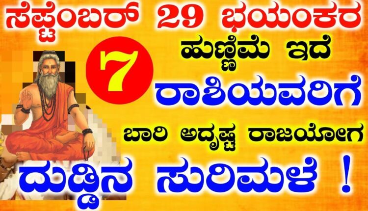 ಸೆಪ್ಟೆಂಬರ್ 29 ಇಂದು ಭಯಂಕರ ಹುಣ್ಣಿಮೆ 7 ರಾಶಿಯವರಿಗೆ ಬಾರಿ ಅದೃಷ್ಟ ದುಡ್ಡಿನ ಸುರಿಮಳೆ ಸುರಿಯುತ್ತದೆ ರಾಜಯೋಗ