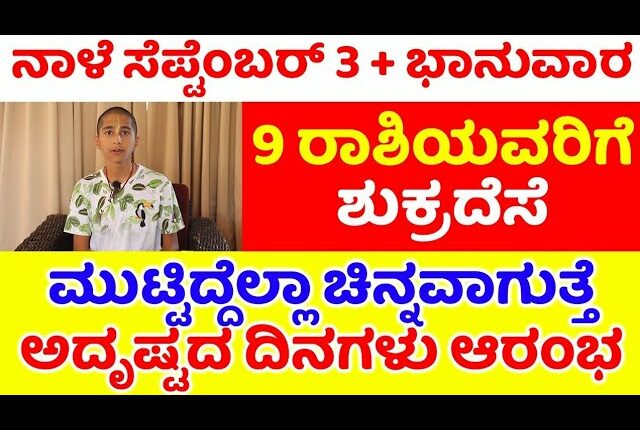 ಎಲ್ಲರಿಗೂ ನಮಸ್ಕಾರ ಸೆಪ್ಟೆಂಬರ್ ಮೂರನೇ ತಾರೀಖು ಭಾನುವಾರ ಒಂಬತ್ತು ರಾಶಿಯವರಿಗೆ ಶುಕ್ರ ಸಿ ಸೂರ್ಯ ದೇವನ ಕೃಪೆಯಿಂದ ಮುಟ್ಟಿ ದ್ದೆಲ್ಲ ಚಿನ್ನ ವಾಗುತ್ತೆ. ಅದೃಷ್ಟದ ದಿನ ಗಳು ಆರಂಭ. ಹಾಗಾದ್ರೆ ಅಂತಹ ಅದೃಷ್ಟವಂತ ರಾಶಿ ಗಳು ಯಾವು ವು ಅಂತ ನೋಡೋಣ ಬನ್ನಿ.