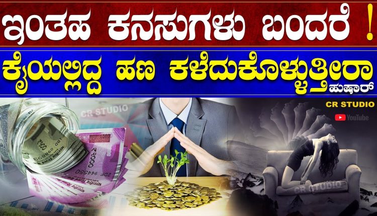 ಇಂತಹ ಕನಸುಗಳು ಬಂದ್ರೆ ಕೈಯಲ್ಲಿದ್ದ ಹಣ ಕಳ್ಕೊಳ್ತೀರಾ. ಹುಷಾರ್ ಬೆಳಗ್ಗೆ ಕಂಡ ಕನಸು ಯಾರಿಗೂ ಹೇಳ ಬೇಡಿ. ಬೆಳಗಿನ ಜಾವ ಆರು ಪ್ರಜ್ಞೆಯ ಲ್ಲಿ ಕಂಡ ಕನಸುಗಳು ನಿಜವಾಗುತ್ತವೆ. ಪ್ರತಿಯೊಬ್ಬ ವ್ಯಕ್ತಿಯು ನಿದ್ರಿಸುವಾಗ ಖಂಡಿತ ವಾಗಿಯೂ ಕನಸುಗಳು ಕಾಣುತ್ತಾನೆ. ಕನಸು ವಿಜ್ಞಾನ ದಲ್ಲಿ ಮತ್ತು ಅವುಗಳ ವ್ಯಾಖ್ಯಾನ ಕ್ಕೆ ಸಂಬಂಧಿಸಿದ ಅನೇಕ ವಿಷಯಗಳ ನ್ನ ಬರೆಯ ಲಾಗಿದೆ. ನಾವು ರಾತ್ರಿ ಮಲಗಿದಾಗ ವಿಚಿತ್ರ ವಿಚಿತ್ರ ಕನಸುಗಳು ಕಾಣುತ್ತ ಲೇ ಇರುತ್ತೇವೆ. ನಮಗೆ ಬಿದ್ದಂತಹ ಕೆಟ್ಟ ಕನಸಿನ ಪರಿಣಾಮ ತಪ್ಪಿಸ ಲು ಮತ್ತು ಒಳ್ಳೆಯ ಕನಸುಗಳ ಸಂಪೂರ್ಣ ಫಲಿತಾಂಶ ವನ್ನ ಪಡೆಯುತ್ತಾರೆ.