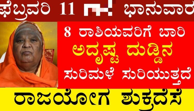 ಫೆಬ್ರವರಿ 11 ಭಾನುವಾರ 8 ರಾಶಿಯವರಿಗೆ ಬಾರಿ ಅದೃಷ್ಟ ದುಡ್ಡಿನ ಸುರಿಮಳೆ ಸುರಿಯುತ್ತದೆ ರಾಜಯೋಗ ಶುಕ್ರದೆಸೆ